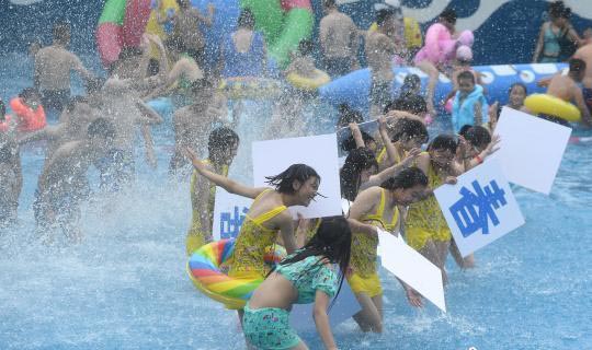 重慶高溫天氣中考畢業(yè)生水中拍攝個(gè)性畢業(yè)照