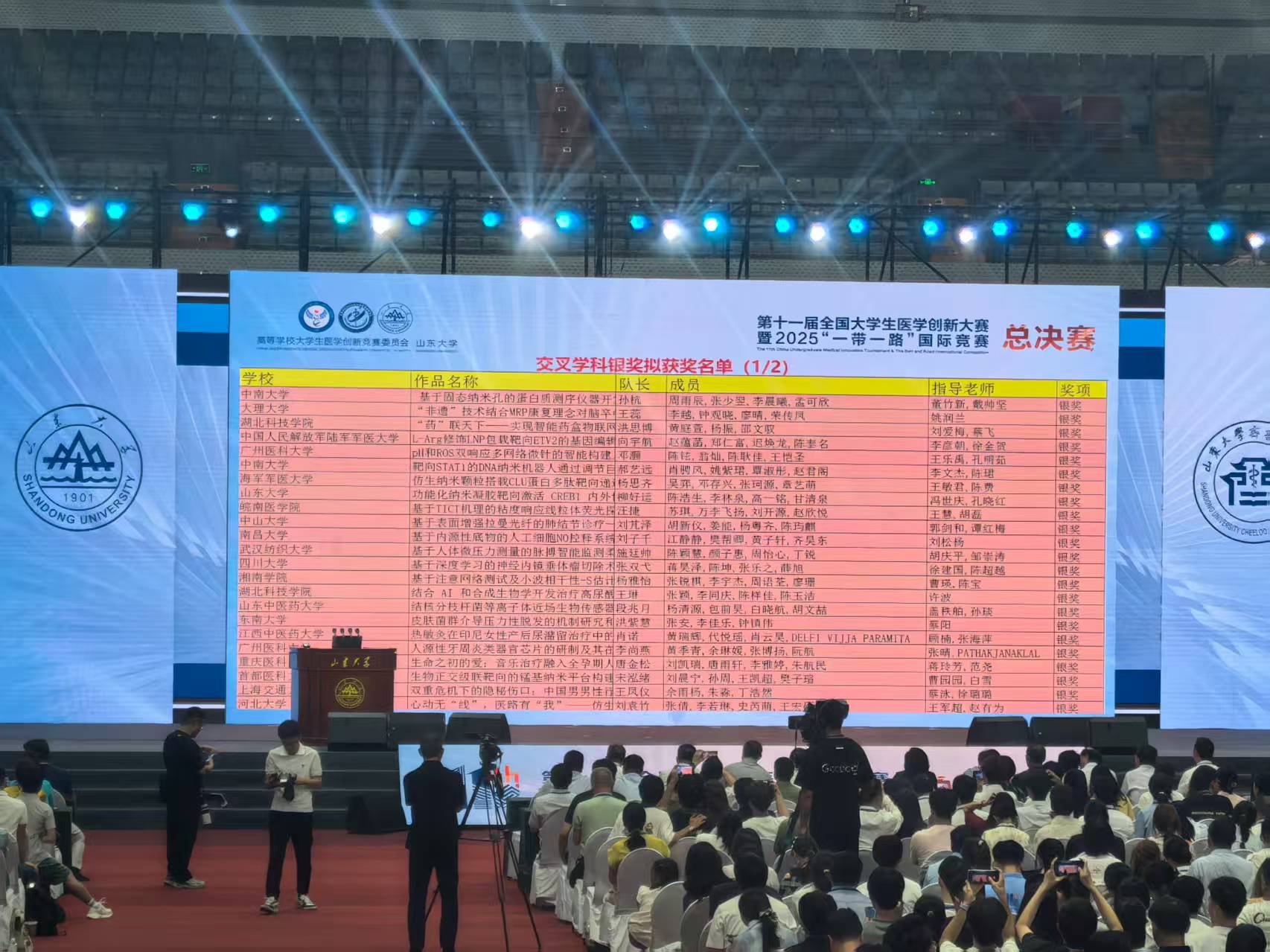 2025年8月19日,第十一屆全國大學生醫學創新大賽暨2025“一帶一路”國際醫學競賽總決賽在濟南圓滿結束。本屆大賽設置基礎臨床、口腔醫學、交叉學科等六個賽道,聚焦基礎創新研究與實驗設計,吸引了來自全球10個國家201所高校(其中包括26所國外高校)的820余支隊伍、近4000名本科生進入全國總決賽,并有200多位嘉賓與評審專家參與,賽事規模與參賽人數均突破歷屆記錄。經過多輪激烈競爭,我校學子在全國總決賽中榮獲兩項銀獎。