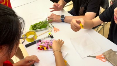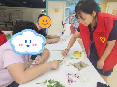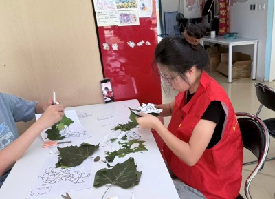 帶著昨日的溫暖余韻,16日“青穗星橋”的志愿者們再次如約而至,帶來了全新的自然藝術體驗——植物拓印與環保花籃編織。