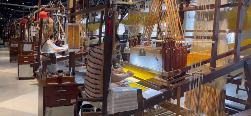 踏入南京云錦博物館,成員們佇立在來自明、清朝代的云錦文物前,久久凝視,深入研究其制造工藝與技術。隨后,成員們現場觀看了云錦的織造過程。只見織工們熟練地操作著傳統織機,手腳并用,一梭一梭地編織著。在織造過程中,每一個動作都精準而有序,一根絲線的走向、一個圖案的形成,都凝聚著織工們多年的經驗與精湛技藝。