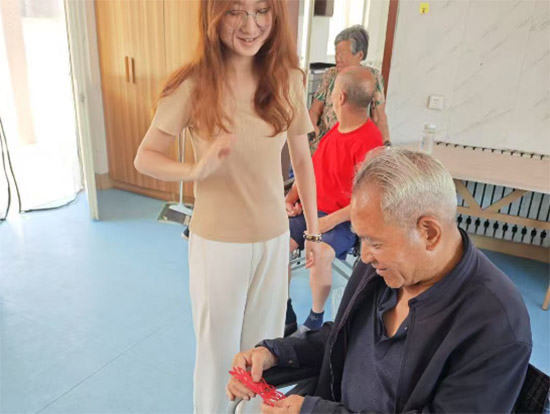 7月26日,即實踐活動的最后一天,實踐團成員為老人們送上親手制作的剪紙,老人們接過剪紙后十分喜愛。