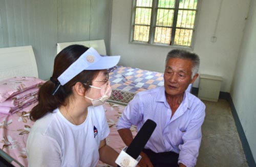 (圖為團隊成員采訪康復中心志愿服務組副組長鄭學海 徐康健攝)
