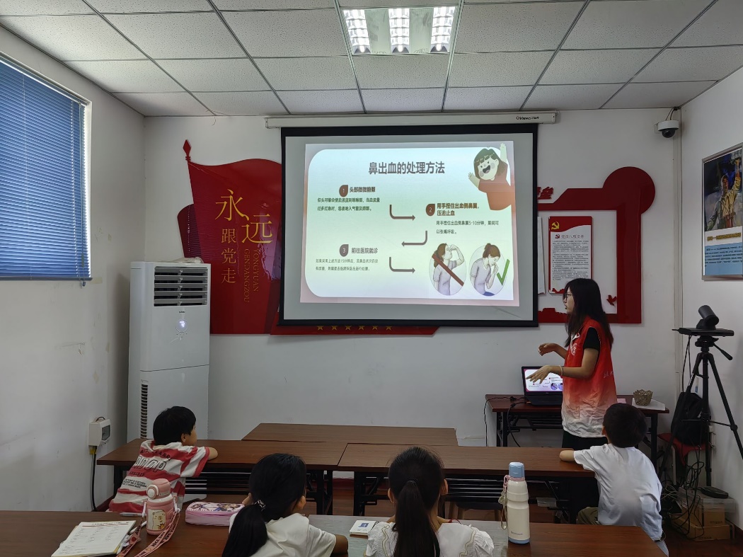 活動同時融入兒童常見健康知識科普內(nèi)容,志愿服務(wù)隊隊員紀(jì)丹陽通過趣味謎語引出眼睛保護等主題,延伸講解了鼻出血處理、牙齒保護等日常健康知識,讓孩子們在關(guān)注水域安全的同時,兼顧對自身健康的呵護。互動環(huán)節(jié)中,豐富的小游戲和問答讓學(xué)習(xí)氛圍更輕松,孩子們在實踐中鞏固所學(xué),不僅深化了對世界防溺水日主題的理解,也初步建立了全面的自我保護意識。