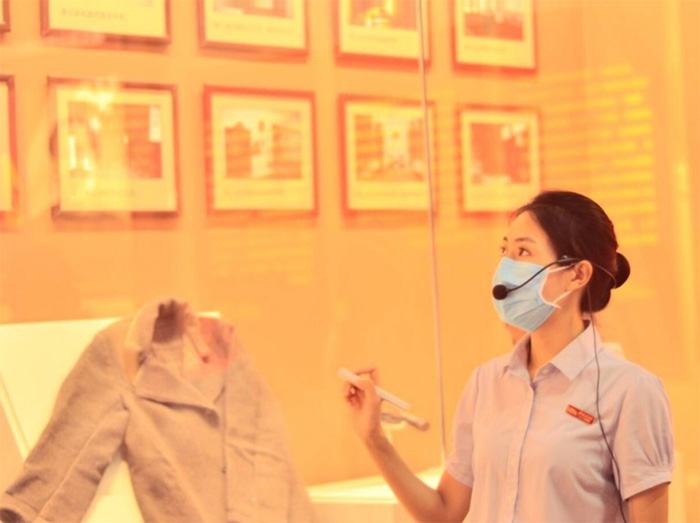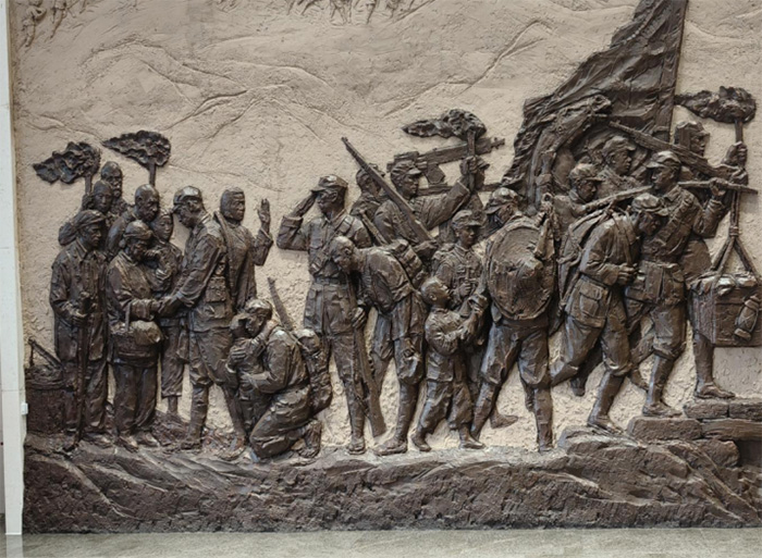 圖為團隊成員認真聆聽講解員講解長征歷程