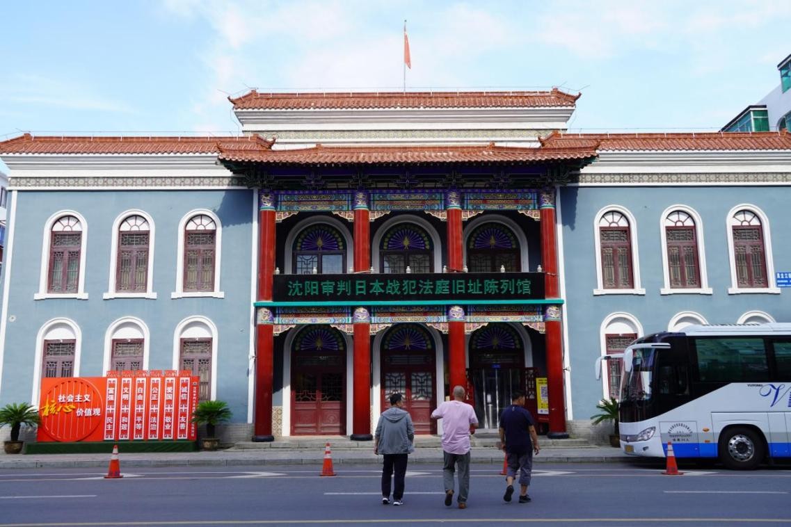 中國(guó)沈陽(yáng)審判日本戰(zhàn)犯法庭舊址陳列館。該館記錄了1946年中國(guó)政府依法審判日本戰(zhàn)犯的全過(guò)程。館內(nèi)陳列著大量圖片、庭審檔案與實(shí)物,成員們?cè)诜ㄩ郴仨懼校路鹇牭健端苫ń稀防锬欠?ldquo;決不忘仇”的吶喊化為正義的審判,警醒世人銘記歷史、守護(hù)和平。