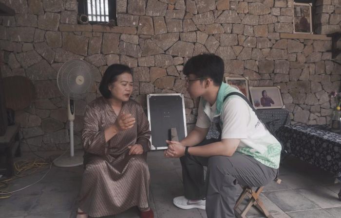 圖為與沂蒙山小調傳唱人宋守蓮老師對話