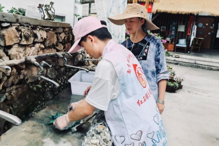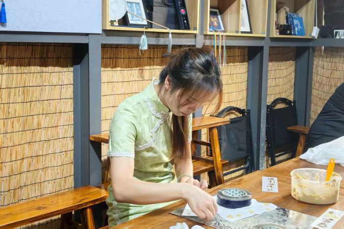 為深入了解民族非遺文化傳承現狀,探尋豆染技藝的獨特魅力。2025年8月14日,南京師范大學泰州學院"紅石榴"志愿隊以“調研民族非遺傳承,探秘非遺豆染魅力”為主題的實踐活動在貴州省貴陽市花溪區青巖龍井村黔織活非遺體驗館展開實踐活動。實踐人員通過走進古樸村落,與豆染非遺傳承人張婷婷老師、技藝制作楊老師深度互動,在文化探訪與技藝體驗中揭開非遺豆染的傳承密碼,并開展民族文化調研與宣講,為文化的保護與傳播貢獻力量。
