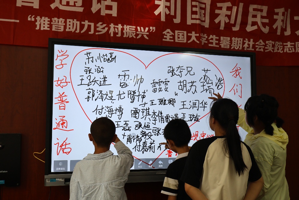 圖為實踐團向?qū)W生們進行推普教育 何芙芹攝