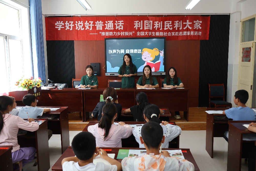 七月隴原暑氣正濃,在甘肅省靜寧縣雙峴鎮(zhèn)中心小學(xué)的校園里,一場以“說好普通話”為核心的鄉(xiāng)村振興實踐活動火熱開展。天津師范大學(xué)“普語津聲・靜寧振興”實踐團隊與蘇州大學(xué)“青青柳愛心”支教團在此相遇,以課堂為陣地、語言為紐帶,用三天時間為當(dāng)?shù)貎和罱ㄆ鹱孕疟磉_的平臺,讓普通話成為連接鄉(xiāng)村與外界的“橋梁”。