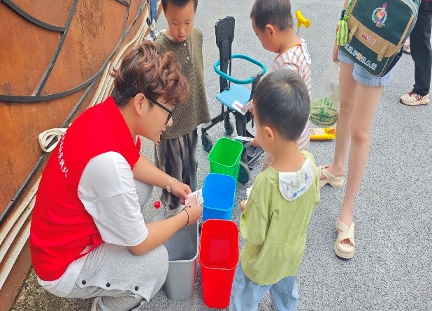 圖為團(tuán)隊成員講解垃圾分類