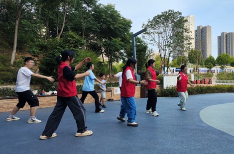 活動最后,隊員們帶領(lǐng)公園內(nèi)游玩的路人一起打太極,始終貫徹把太極帶到群眾中去的理念。