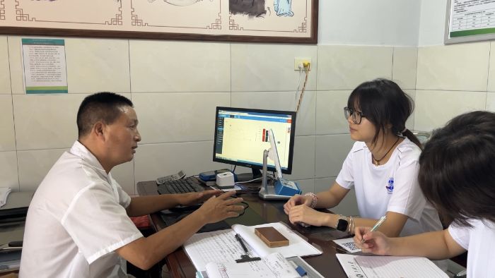 在樂園村衛(wèi)生室,實(shí)踐隊(duì)成員與有著35年行醫(yī)經(jīng)驗(yàn)的李發(fā)從村醫(yī)進(jìn)行深度訪談。李發(fā)從作為中國合作醫(yī)療第三代傳承人,肩負(fù)村衛(wèi)生室負(fù)責(zé)人與合作醫(yī)療紀(jì)念館館務(wù)員雙重職責(zé)。李醫(yī)生詳細(xì)介紹了新型農(nóng)村合作醫(yī)療在本村的實(shí)施情況,他表示:我們落實(shí)醫(yī)療保障措施,所有脫貧人口均參加了城鄉(xiāng)居民基本醫(yī)療保險(xiǎn),全村參保率達(dá)到100%,極大減輕了群眾就醫(yī)負(fù)擔(dān)。從日常診療到公共衛(wèi)生服務(wù),李發(fā)從用幾十年的堅(jiān)守詮釋了基層醫(yī)者的責(zé)任與擔(dān)當(dāng),為醫(yī)學(xué)生樹立了扎根基層、服務(wù)百姓的榜樣。