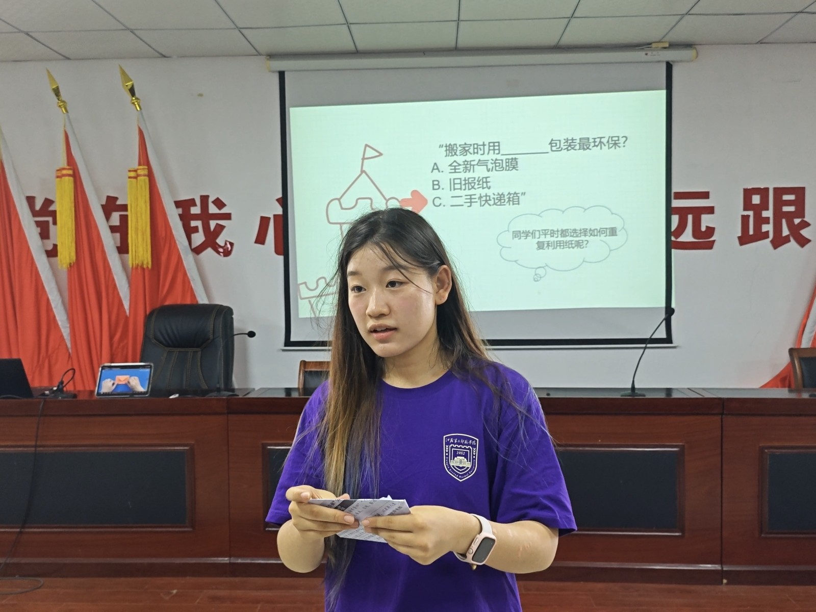 團隊注重環保知識的普及與推廣,面向不同群體開展精準化、場景化宣講。在蟹塘社區居家養老服務中心,志愿者從老年人日常生活的實際出發,詳細講解垃圾分類的重要性,結合鄉村環境特點,強調垃圾分類對健康生活的積極影響。宣講內容貼近生活、通俗易懂,增強了老人們的環保意識和參與感。