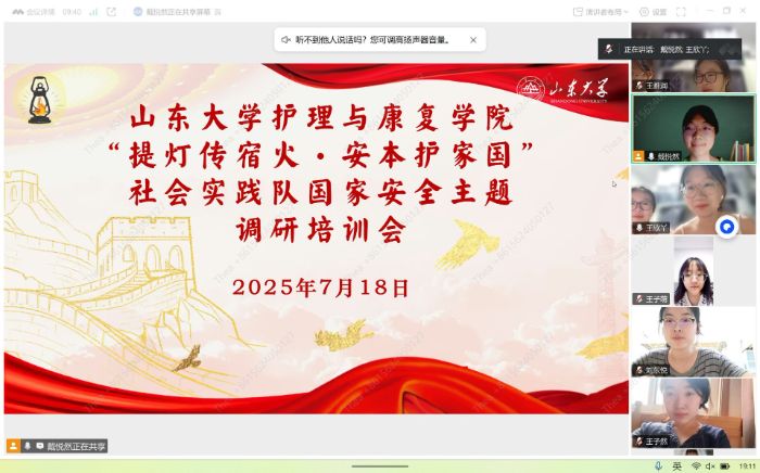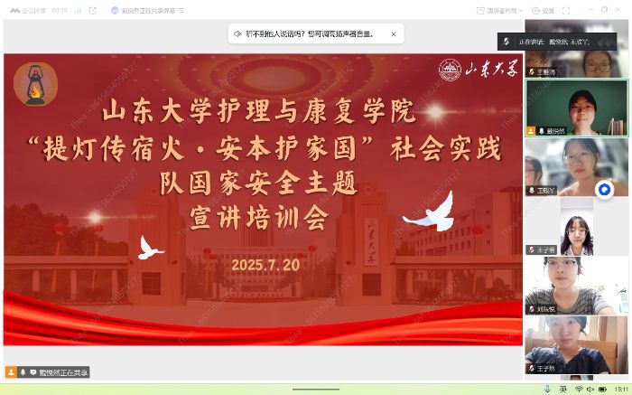 山東大學護理與康復學院“提燈傳宿火・安本護家國”社會實踐隊的暑期實踐,不僅是一次知識傳播與能力提升的實踐,更是新時代青年踐行“強國有我”誓言的生動寫照——以青春之我、奮斗之我,為國家安全防線注入青春力量,這就是我們留給這個夏天最珍貴的答卷。