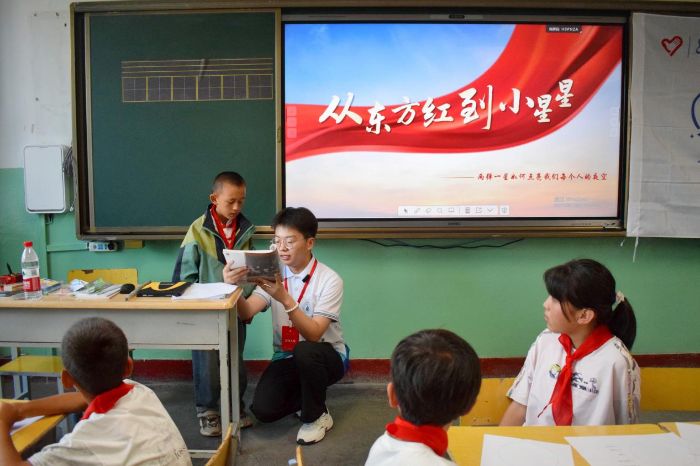 在鎖南民族小學,“七彩云朵”團隊精心打造“童夢彩翼”暑期成長營,重點服務東鄉留守兒童。團隊通過“色彩心情圈”、對稱知識學習等趣味心理互動,拉近與孩子們的距離,在關懷與教育中啟迪童心,厚植家國情懷。“星火傳承”計劃通過主題宣講、互動游戲與心理繪畫,生動講述“兩彈一星”元勛事跡,深化青少年愛國情懷與民族自豪感。“語翼振鄉”行動則聚焦語言能力提升,利用繞口令比賽、“方言工坊”、“蘿卜蹲”等游戲,巧妙破解語言關隘,有效提升了孩子們的普通話應用能力。團隊成員還參觀了校史館,感悟百年民族教育歷程和鄉村教育工作者扎根奉獻的“螢火蟲精神”。