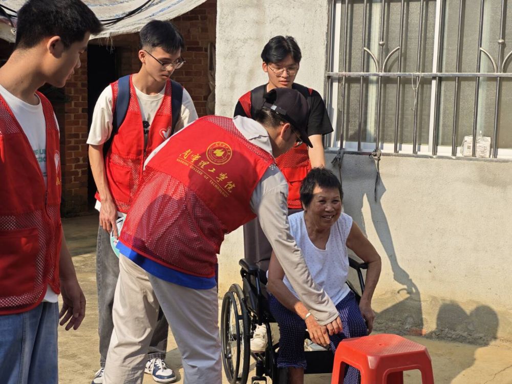 活動(dòng)準(zhǔn)備期間,團(tuán)隊(duì)隊(duì)長(zhǎng)梁積賀積極聯(lián)絡(luò)南寧市武鳴區(qū)政府,在政府支持協(xié)調(diào)下,順利與雙橋鎮(zhèn)下淥村村委對(duì)接,為活動(dòng)開(kāi)展筑牢基礎(chǔ)。活動(dòng)當(dāng)日,烈日炎炎,隊(duì)員們額間掛著汗珠,卻步伐堅(jiān)定,懷揣對(duì)退伍老兵的敬意與慰問(wèn),赴兩位爺爺?shù)?ldquo;紅色之約”。