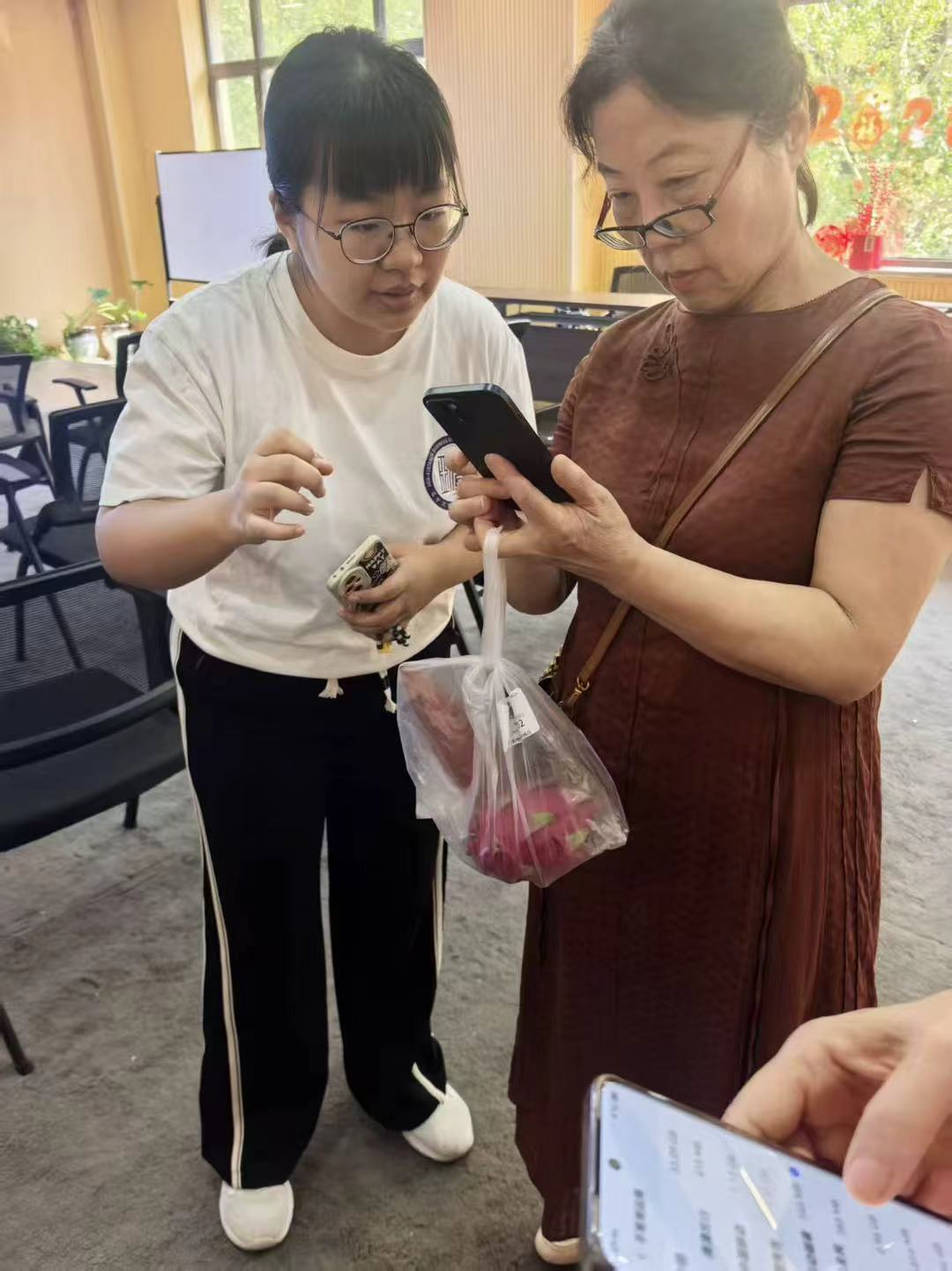 宣講結(jié)束后,為了幫助老年人鞏固所學(xué)知識(shí),團(tuán)隊(duì)精心設(shè)計(jì)了“果蔬套圈”互動(dòng)環(huán)節(jié)——成功回答一個(gè)問(wèn)題即可獲得五個(gè)套圈,只需回答對(duì)卡片上的問(wèn)題,就能獲得新鮮的水果和蔬菜。“請(qǐng)問(wèn)如何在手機(jī)通訊錄中添加新的聯(lián)系人啊?”“想自己的孩子們時(shí),你知道如何打視頻電話看看他們嗎?”面對(duì)問(wèn)題,老人們積極思考,有的還主動(dòng)向身邊的團(tuán)隊(duì)成員求助,現(xiàn)場(chǎng)氛圍熱烈而溫馨。這種“趣味游戲+知識(shí)鞏固”的模式,不僅讓老人們?cè)谳p松的氛圍中加深了對(duì)操作步驟的記憶,更激發(fā)了他們主動(dòng)學(xué)習(xí)智能設(shè)備的興趣。