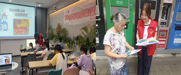 7月7日至11日,團隊開展“棲霞山生態價值”主題科普周活動,深入社區與校園,通過PPT展示、動畫講解、案例分享等形式,生動闡釋棲霞山的生態功能與保護意義,融入國家生態文明政策與行業前沿,幫助公眾明確自身在生態保護中的責任與行動方向;顒油皆O置趣味問答、互動咨詢等環節,配備專業科普志愿者提供一對一解答,重點普及新污染物危害,并向中小學生發出環保倡議。同時,團隊精心制作主題海報與科普手冊,組織生物標本展覽,以寓教于樂的方式拉近公眾與自然的距離,切實提升生態保護的知曉率與參與度。