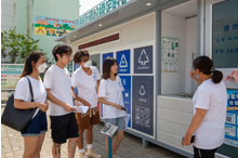 圖為工作人員向?qū)嵺`團(tuán)成員講述垃圾分類小屋,中國青年網(wǎng)通訊員 李勇 攝
