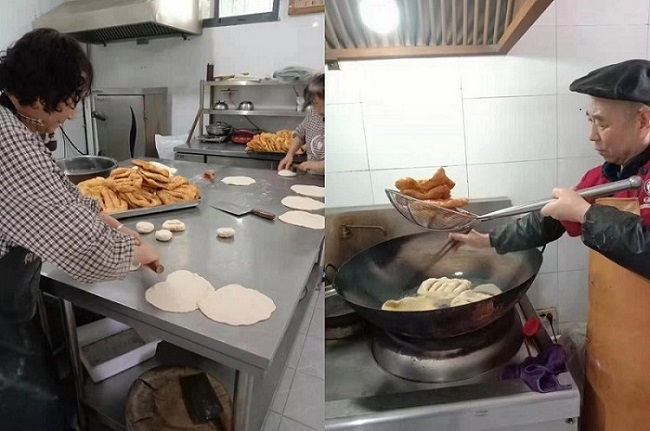 圖為廚師師傅為老人準(zhǔn)備早餐