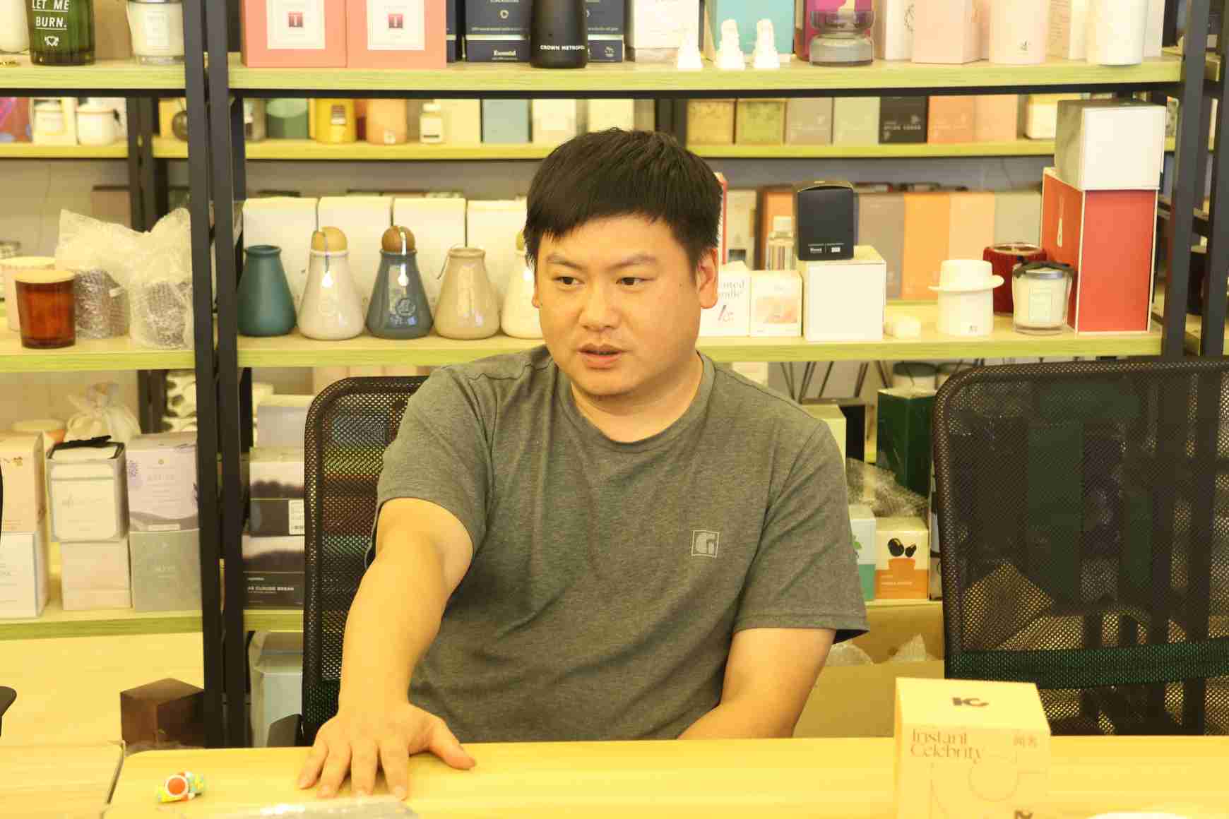 圖:陳冰負(fù)責(zé)人介紹香氛產(chǎn)業(yè)情況 沈弋琳 攝