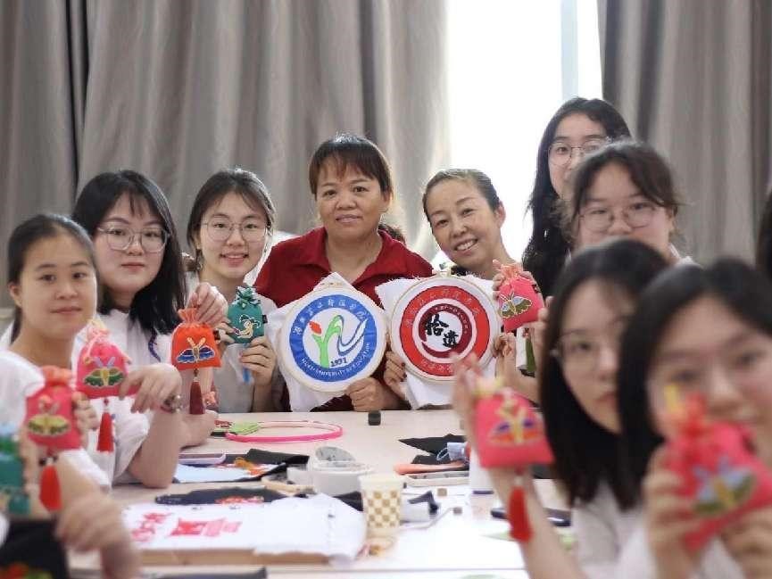 圖為陽新布貼傳承人向?qū)嵺`隊員展示縫制針法。 甘樂 供圖