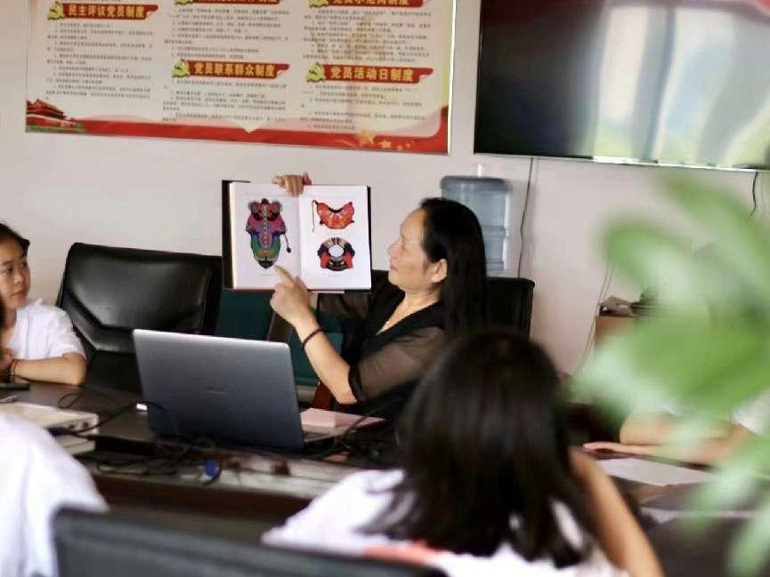 圖為陽新布貼非遺傳承人向?qū)嵺`隊員展示布貼式樣——風(fēng)帽。甘樂 供圖