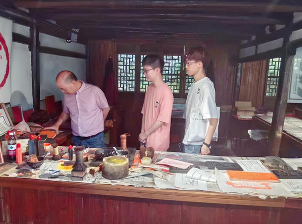 在甌海澤雅紙山,在溫州非遺傳承人徐祥新老師的指導下,團隊成員在現(xiàn)場體驗了雕版印刷術(shù)和造紙技藝,大家全身心沉浸在千年文化的魅力中。團隊成員王浩明感嘆道:“非遺文化既是中國優(yōu)秀傳統(tǒng)文化的具體體現(xiàn),也是中國人民智慧的真實保留。年輕一代只要親身體驗過這種傳統(tǒng)技藝,便會被中華傳統(tǒng)文明所深深吸引,文化自信油然而生。”