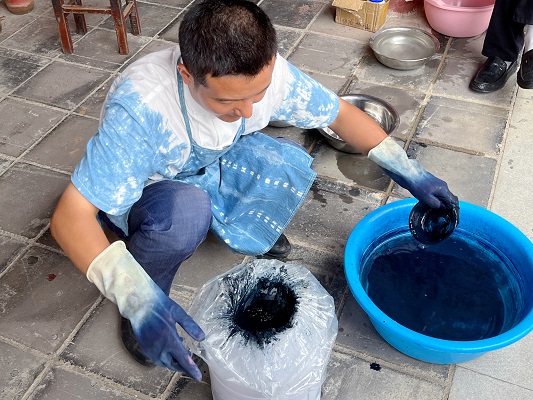 6月30日,湖北第二師范學院“拾遺”暑期三下鄉志愿服務隊赴襄陽市棗陽縣百布堂學習中國傳統文化技藝——粗布制作的前兩天。為了更好的了解并學習棗陽粗布制作,其非遺傳承人劉海倫和劉倩老師向我們介紹了粗布制作的歷史及發展,并教我們使用原始的粗布制作工具來紡織布料。隨后制作染液,帶領實踐團成員們學習體驗了扎染、型忽染和制作藍印花布。
