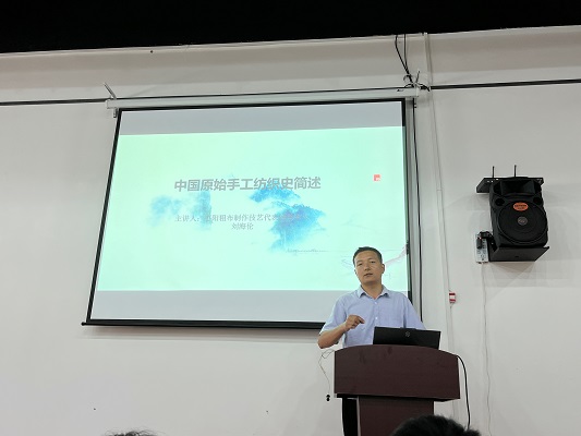 圖為劉海倫老師向團隊成員們講解中國手工紡織史和粗布制作的理論。