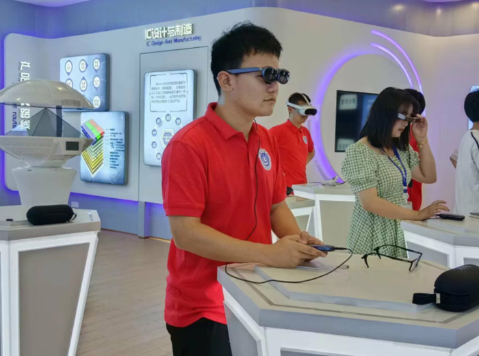 活動伊始,公司負責人韓總、王部長向池州學院的師生們介紹了2023屆畢業生入職培訓情況,屏幕行業的發展現狀、技術要求以及就業機會。活動中,調研團隊參觀了蕪湖熙泰科技公司的顯示屏研發成果,在專業的技術人員的講解下,了解屏幕組裝和測試的工藝、學習如何進行屏幕組裝,并親自動手測試屏幕性能。親身體驗了XR產品的神奇與便捷。通過這一實踐過程,參與者們不僅增加了對屏幕工藝的了解,還提升了他們的實踐技能和團隊合作能力。