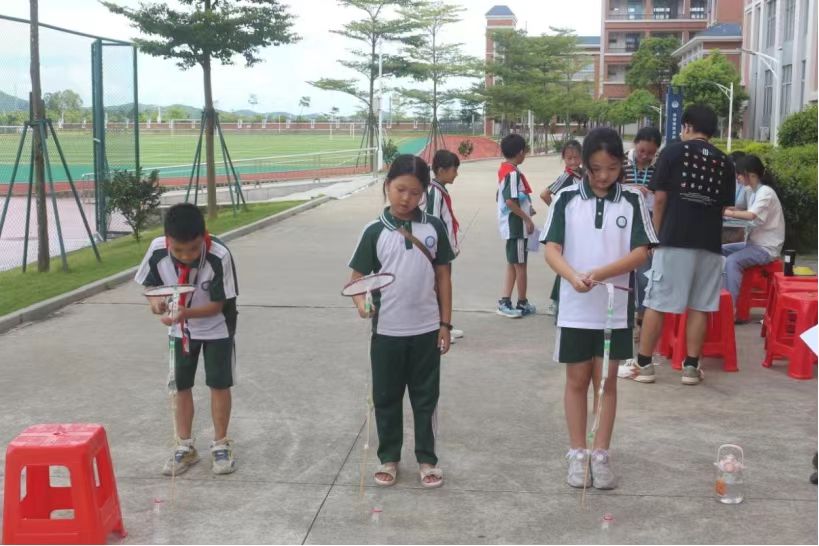 隨著夏日的腳步逐漸臨近,華南師范大學(xué)書畫協(xié)會(huì)流墨實(shí)踐服務(wù)隊(duì)于2024年7月19日在廣東省陽(yáng)江市南華實(shí)驗(yàn)學(xué)校舉辦了一場(chǎng)主題為“趁盛夏,一起出發(fā)吧!”的夏日游園會(huì)活動(dòng),結(jié)合體育、語(yǔ)文等多學(xué)科的互動(dòng)游戲方式,培養(yǎng)學(xué)生全方位的審美素養(yǎng),促進(jìn)學(xué)生在自由游玩的過程中,深入體驗(yàn)美的內(nèi)涵,激發(fā)他們對(duì)美的感知、欣賞和創(chuàng)造能力。同時(shí),通過采取團(tuán)隊(duì)與個(gè)人的游戲形式,增強(qiáng)學(xué)生的團(tuán)隊(duì)協(xié)作精神和競(jìng)爭(zhēng)意識(shí)。
