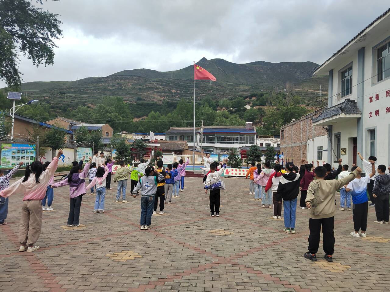 早上八點左右隊伍抵達漳縣,我們被這里的自然風光所吸引,四周環繞的青山仿佛是大自然為這片土地筑起的綠色屏障。然而,我們也深知,在這美麗的背后,山區的孩子們可能面臨著教育資源相對匱乏的困境。我們此次實踐的目的,就是要為這里的孩子們帶來知識、歡樂和希望。