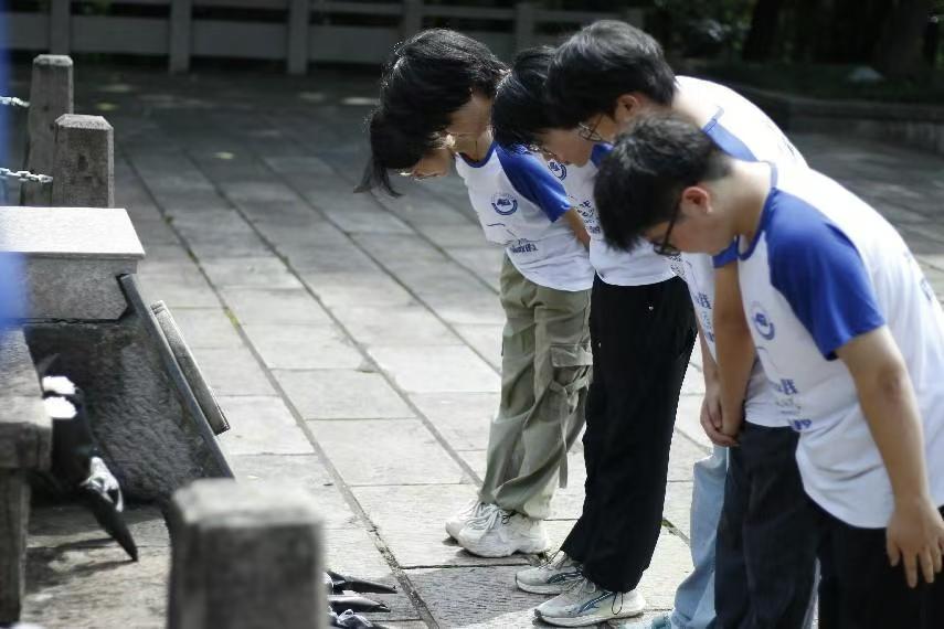 圖為團隊成員向烈士之墓鞠躬 黃睿潔 攝