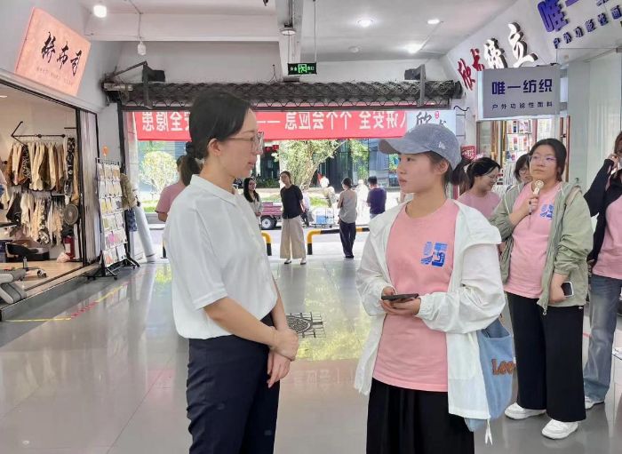 為洞察紡織外貿行業生態,探尋傳統市場轉型路徑,6月28日清晨七點半,當柯橋這座“布業之都”剛剛蘇醒,浙江金融職業學院國際商學院探貿小先鋒暑期實踐團的成員們,已穿行在中國輕紡城北區如織的人流與浩瀚的布海之中。此行目標清晰:深入亞洲最大的紡織品集散地,觸摸行業跳動的脈搏,在經緯交織的市場里,探尋輕紡外貿的未來之路。