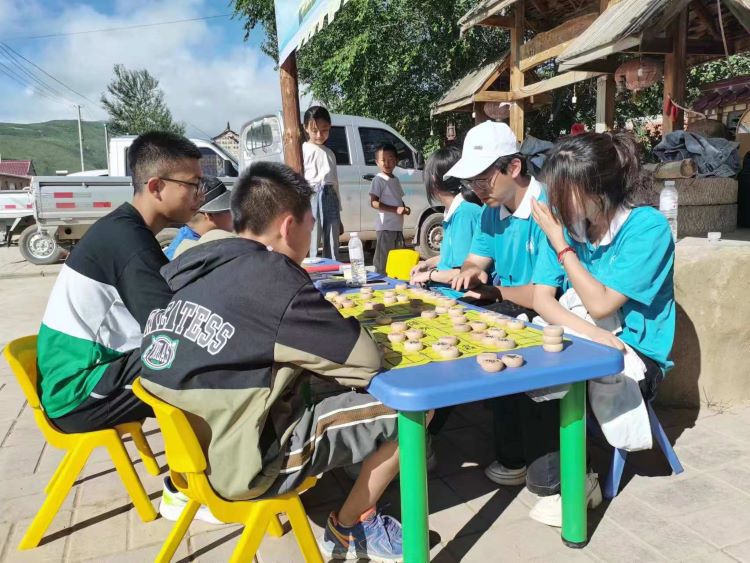圖為隊員們與孩子們進行象棋比賽。 趙紫嬌 供圖