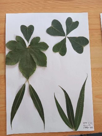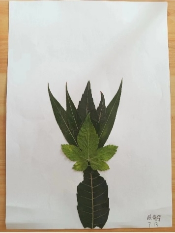 作為暑期課程,我們要兼顧學業與興趣,所以我還負責了六年級的手工課。我觀察到這里有很多種植物,樹葉形狀各不相同,所以第一節手工課我帶領學生制作了葉子畫,觀察自然的形態,自己選擇喜歡的樹葉,發散思維,將材料設計成想要的圖案,使用雙面膠或固體膠將其固定在紙面上。了解過學生的意愿后,我決定接下來的手工課有折紙與漆扇,和學生一起動手做些簡易的東西,也體驗新鮮事物。