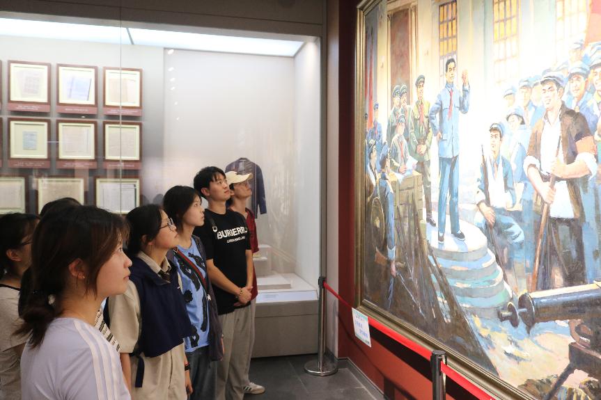 實踐出真知,“可樂五班”團隊的腳步并未停歇。我們先后參觀了江西省博物館、南昌八一紀念館、八一廣場等歷史和紅色文化地標。在館內,一件件珍貴的文物、一幅幅生動的圖片、一段段詳識的文字,如同穿越時空的信使,將那烽火連天的歲月緩緩展現在我們面前。我的目光,劃過陳列柜中的展品,就猶如劃過了一個個烈士們英勇的靈魂。我知道,那不僅僅是當年革命進程中戰士們使用過的武器和生活用品,那更是中國共產黨開拓事業、助力人民的艱苦而真實的寫照。在這片紅色的土地上,我們更加堅定了理想信念,誓將青春獻給國家,獻給人民。