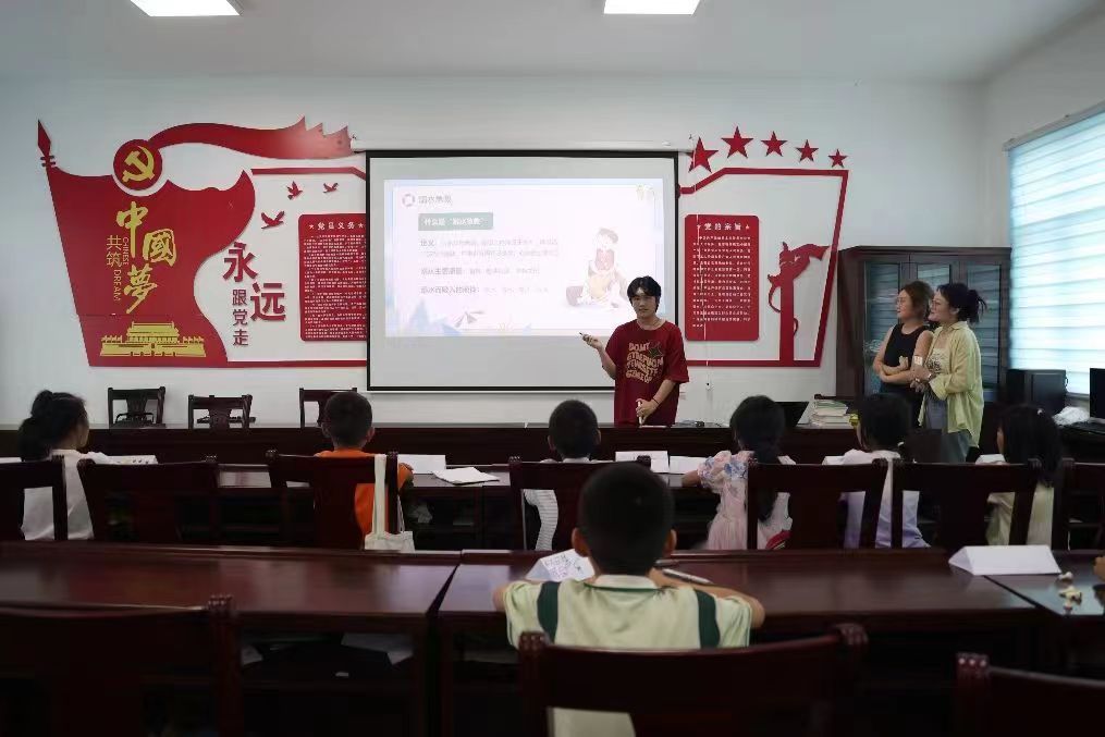 在九崗里村的社區(qū)教室里歡聲笑語不斷,學(xué)生團(tuán)隊和孩子們稚嫩的臉龐構(gòu)成了九崗里村一道獨特的風(fēng)景。7月4日,學(xué)生團(tuán)隊為孩子們上了一堂別開生面的教學(xué)課,此次課堂活動主要為學(xué)生講解遠(yuǎn)離野外危險水域、不慎落水應(yīng)該如何自救、當(dāng)遇到同伴落水時不要進(jìn)行錯誤施救、溺水急救的定義、原因、和措施以及游泳注意事項五個部分安全知識。通過此次防溺水安全教育課堂活動,學(xué)生們不僅學(xué)習(xí)了寶貴的防溺水知識,還增強了自我保護(hù)意識和能力。