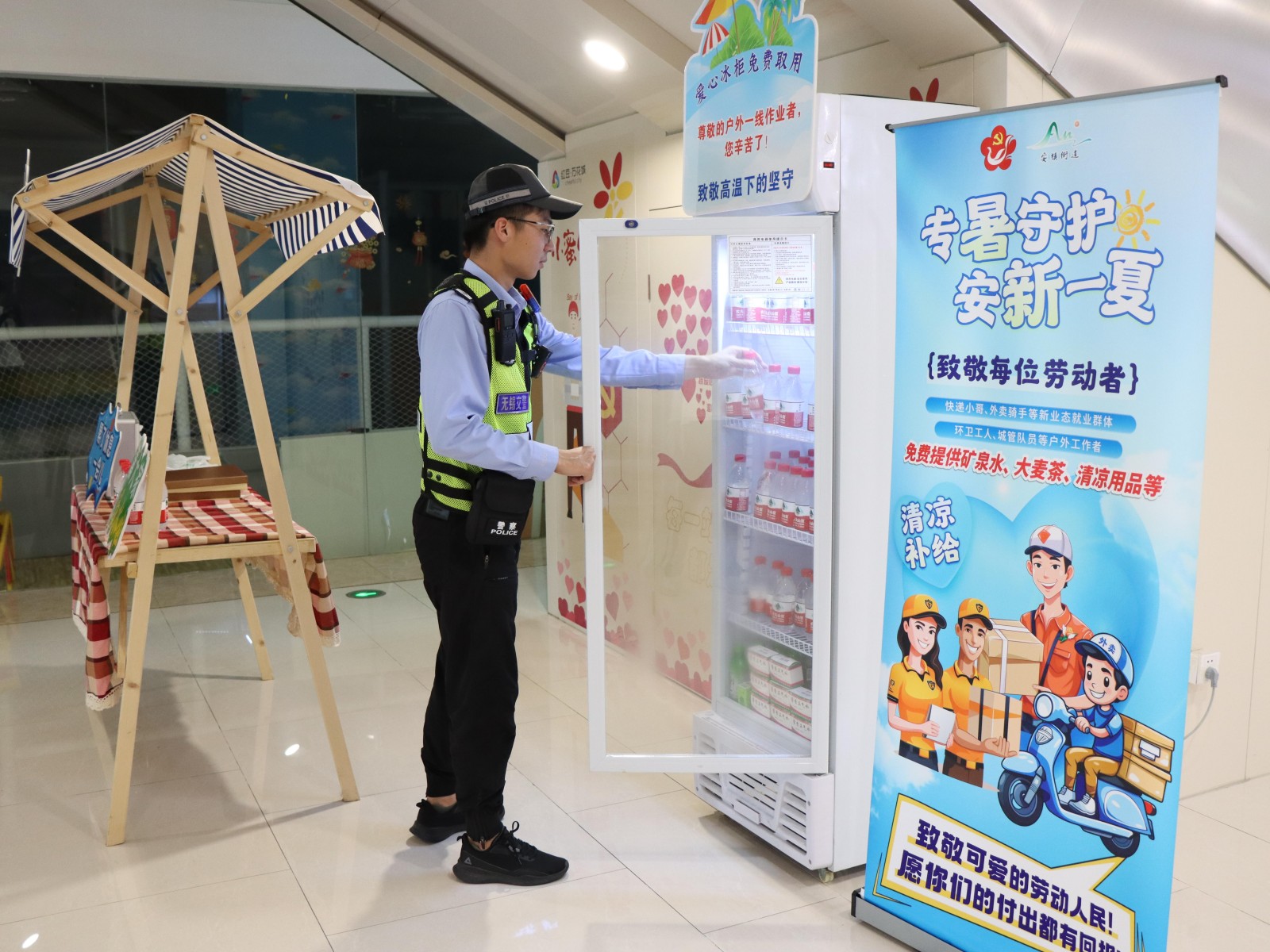 七月的無錫持續高溫,午后路面溫度常超35℃。戶外工作者們頂著烈日作業,補水、降溫成了急需。補給站里,韋志勛每天提前到崗,整理礦泉水、藿香正氣水等物資,檢查藥品保質期。7月23日,一位環衛工李阿姨因高溫頭暈,他及時遞上清涼油和溫水,協助休息緩解。“這些孩子在,我們心里踏實多了。”李阿姨的話道出了不少戶外工作者的感受。