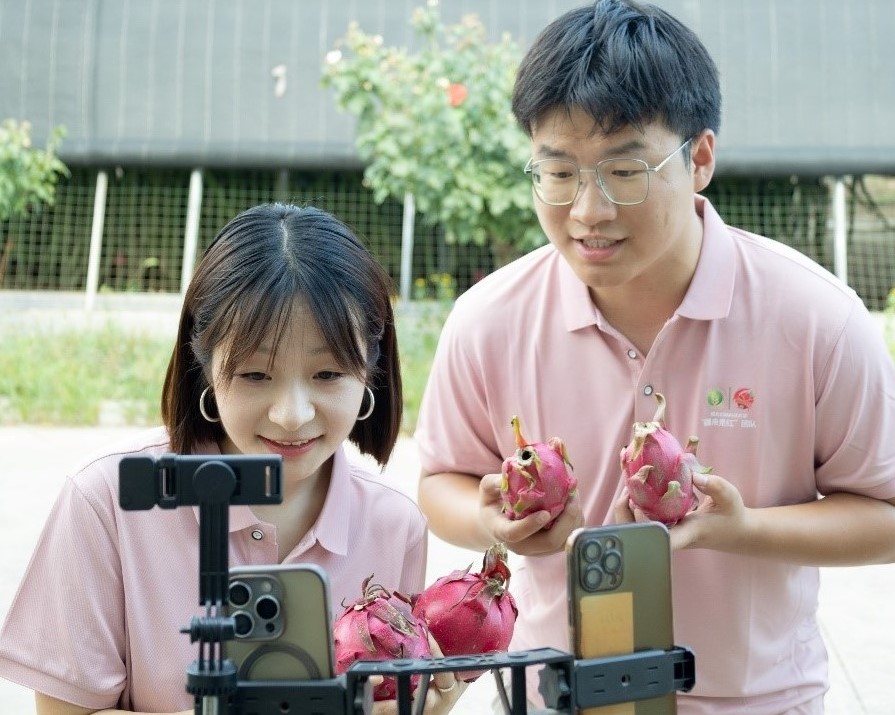 7月24日至30日,西北農林科技大學園藝學院“棚程萬里”鄉村振興調研實踐團的隊員們,將社會實踐的課堂搬進了楊凌區青皮她園火龍果種植基地的直播間。實踐隊員化身“新農人”主播,為基地的特色火龍果新品種傾情代言,用青春力量拓展數字銷路,以實際行動賦能鄉村產業振興。