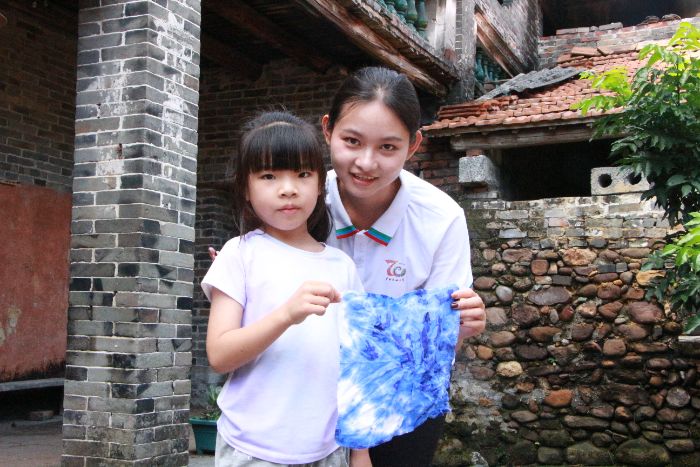 扎染漆扇制作,傳統工藝拉近青春互動。隊員們與小朋友們共同探尋扎染技法的奧秘,折出詩意褶皺,捆扎奇妙形態,浸入染料的瞬間,看素白絹布暈染開斑斕云霞。小朋友們的作品,或帶著稚氣拙樸,或藏著意外驚喜。隊員們在教授技藝時,把現代勞動理念里的文化傳承觀,悄悄種進他們心里;也從孩子們不受拘束的創作里,看到傳統工藝煥新的活力。這場互動,讓勞動教育掙脫枯燥說教的枷鎖,成為基層教育資源中鮮活的文化傳承課,牽著小朋友們的手,在藝術勞動的花園里,向著成長深深扎根。
