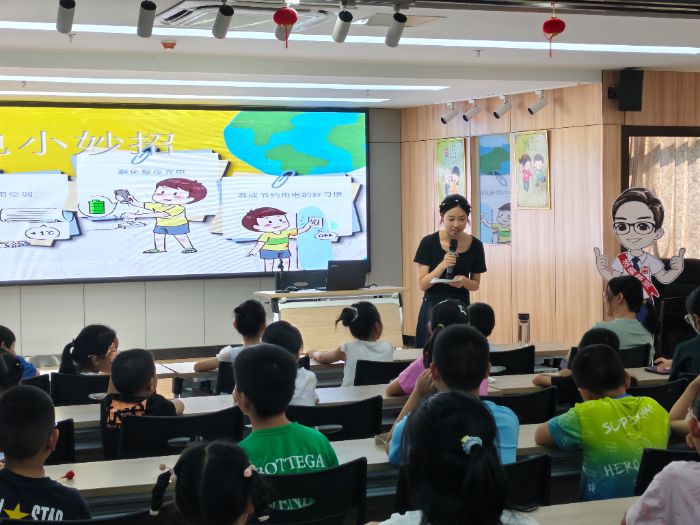 通過前期實踐團在其余地區的調研和準備,8月21日,南通大學數學與統計學院“零碳π實踐團”走進江蘇省南通市狼山鎮街道臨江社區,面向社區兒童和家長開展了一場以“爭當環保衛士,共護綠色星球”為主題的宣講活動。這場活動以孩子的認知特點為出發點,通過互動交流、趣味問答以及實踐體驗,幫助孩子們了解環保知識,樹立綠色低碳的生活理念,讓綠色環保的種子在他們心中生根發芽。