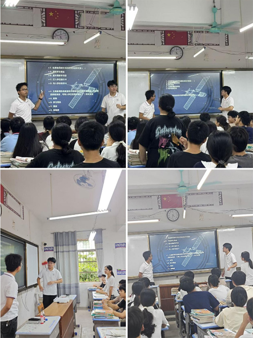 (圖為團(tuán)隊(duì)成員為亞山一中的同學(xué)們進(jìn)行資助政策與國學(xué)、航天精神知識(shí)競(jìng)賽活動(dòng)。徐愉松 供圖)