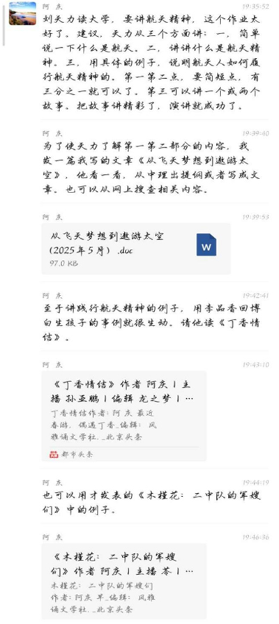 本團(tuán)隊(duì)成員先是于2025年7月12日通過線上微信的形式向我國著名的航天專家劉慶貴先生學(xué)習(xí)如何講述好航天精神。