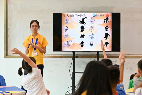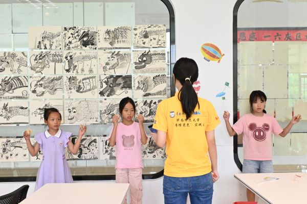 面對(duì)小朋友們“非遺是什么”的好奇詢問(wèn),實(shí)踐團(tuán)成員精心組織了國(guó)家非遺科普課程,通過(guò)牛郎織女傳說(shuō)、古琴藝術(shù)和龍舞表演等生動(dòng)案例,帶領(lǐng)孩子們認(rèn)識(shí)非遺。課堂上,孩子們積極互動(dòng)、踴躍搶答,在實(shí)踐團(tuán)成員寓教于樂(lè)的方式中領(lǐng)略非遺的魅力。