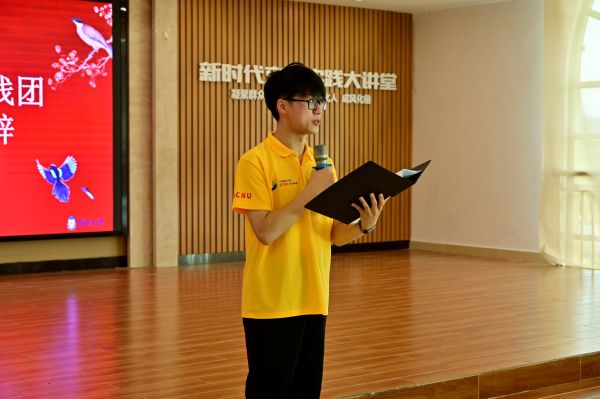 圖3:“賡續(xù)莞邑”實(shí)踐團(tuán)隊(duì)長(zhǎng)劉健新同學(xué)發(fā)言