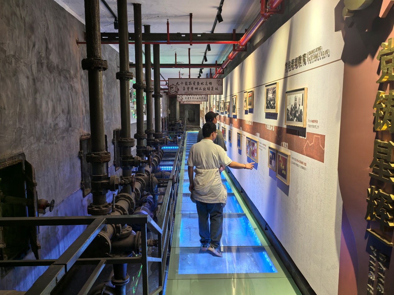 行程終點“運河五號”街區,由昔日紡織廠蛻變為大運河工業遺產展覽館。斑駁機器與老照片訴說著近代工業浪潮中,各民族勞動者在運河沿線工廠并肩奮斗的故事。實踐團成員仔細觀看展覽,從銹跡斑駁的老機器中聆聽到運河沿岸發展的聲音。昔日紗錠飛轉的轟鳴,恰似中華民族共同體生生不息的脈搏,在此刻與新時代民族交融、產業升級的強音共振。