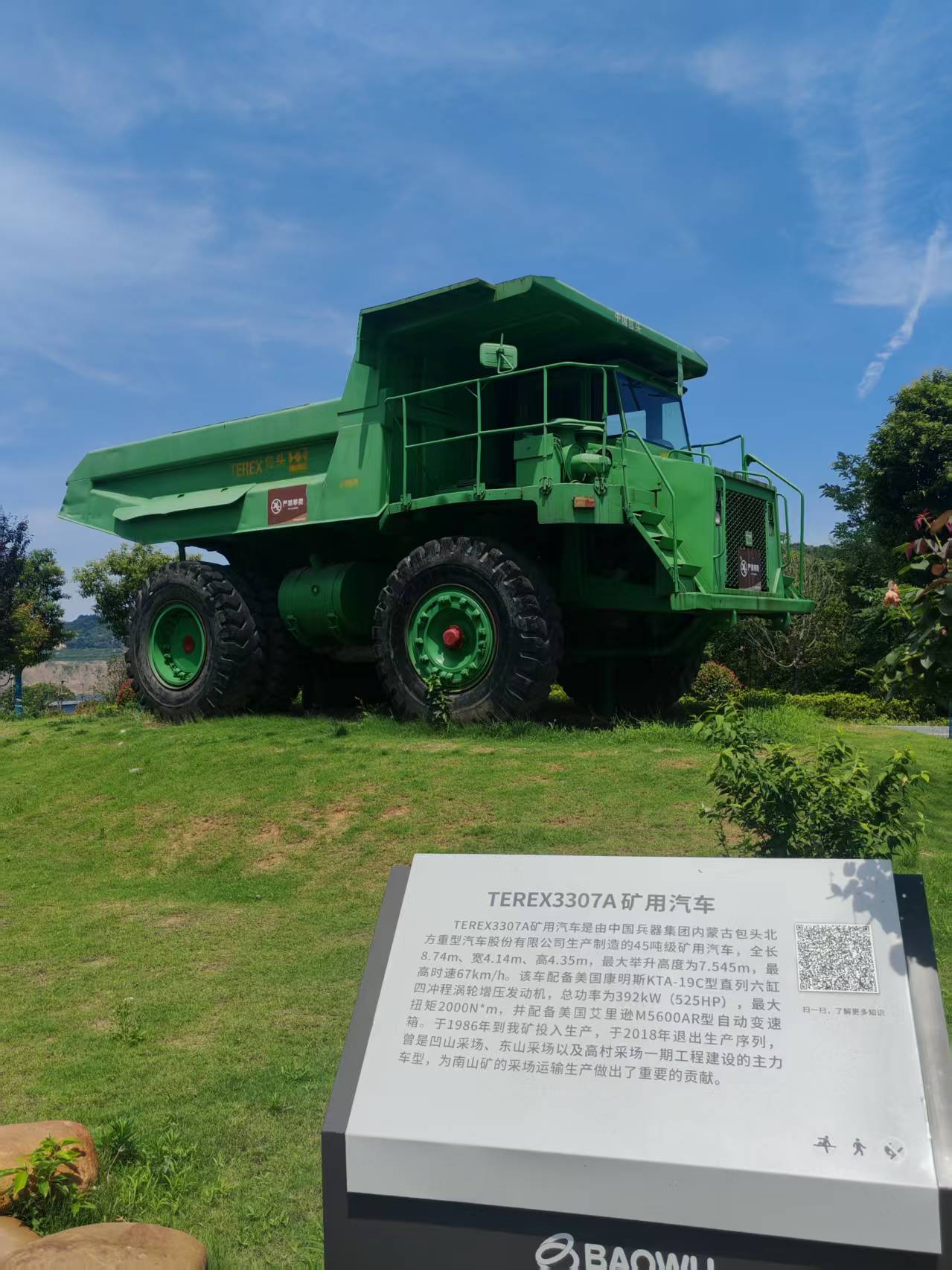 那輛巍然佇立的TEREX3307A礦用汽車,更是工業(yè)遺產(chǎn)的“活化石”。它由中國兵器集團內(nèi)蒙古包頭北方重型汽車股份有限公司制造,長達8.74米、寬4.14米、高4.35米的龐大身軀,曾是凹山采場等工程建設的 “主力軍”。1988年投入生產(chǎn),2018年退役,近三十年的服役生涯,它見證了礦山開采的繁忙與艱辛,也承載著一代產(chǎn)業(yè)工人的青春與熱血。撫摸車身的斑駁綠漆,仿佛能聽見往昔機器轟鳴、車輪滾動的聲響,那是屬于工業(yè)時代的奮斗旋律。