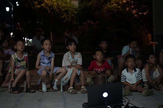 夜晚,實踐團成員在周一村組織開展文化惠民活動,村里的居民和兒童積極參與進來,共同觀影。屏幕上,光影交錯,故事緩緩展開。孩子們瞪大了眼睛,聚精會神地盯著屏幕,生怕錯過任何一個情節。電影中的主人公經歷了種種磨難,最終實現了自己的夢想,這激勵著在場的每一個孩子。村民們也被電影中的情節所吸引,實踐團的成員們坐在一旁,看著村民們和孩子們投入的樣子,心中充滿了滿足感。電影結束后,孩子們圍坐在一起,興奮地討論著電影中的情節,分享著自己的感受和啟示。實踐團的成員們也加入進來,與孩子們一起探討電影中的成長主題,引導他們思考自己的未來和夢想。